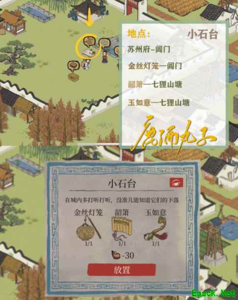 《江南百景图》江南大盗回忆之物获取攻略任务触发: 扶起桌子→苏州探险·阊门