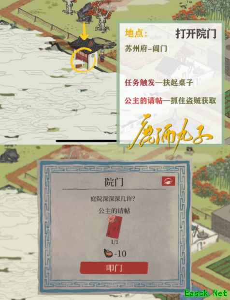 打开院门: 公主的请帖→抓住盗贼获得