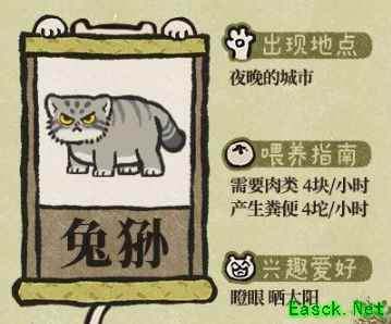 《江南百景图》兔狲获得方法兔狲,也被叫做洋猞猁,是一种常独居于岩石缝及洞穴内的猫科动物。 优秀的视力及听觉系统能让它们在夜间出行捕食,通体长毛覆盖使得它们可以在寒冷的环境中生存。 别看它身材圆滚滚,给人一种憨憨的感觉,其实真实性格很凶猛哦! 在江南小镇,每当夜幕降临,兔狲便有概率会在城市中出现。知府们可前往邂逅这只小可爱~