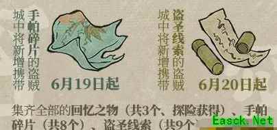 使用时要付给锦瑟,主要用途是解锁桃林居所。活动中一共可以获得8条手帕,6月13日起,从城内携带手帕的盗贼处获取6块,6月19号后续获得另外的手帕碎片。但是目前手帕碎片还不能使用,等到江南大盗活动的下篇6月19日开启后就可以用了。 以上就是《江南百景图》锦瑟公主手帕使用攻略,更多游戏攻略请持续关注手游网! 本文内容来源于互联网,如有侵权请联系删除。 |