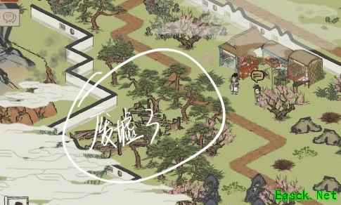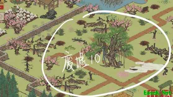 废墟8(修复后是草堂) 废墟8变身需要将下图的树坑栽种,到达树坑需要砍掉杂花花丛。