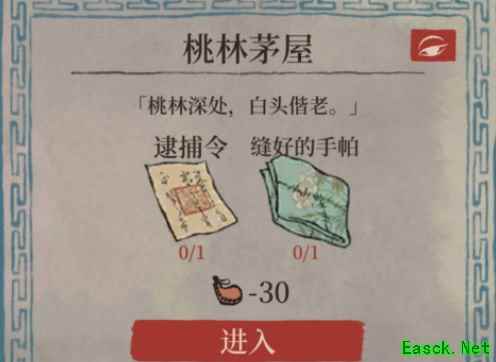 打捞起来梳子之后,看到梳子上面刻有“桃花深处,白头偕老”,于是我就到了七里山塘的桃花林,果然有一块地还没开。 需要把前面的盗贼线索任务和破碎手帕的任务完成后,带着逮捕令和手帕过来。 以上就是《江南百景图》逮捕令获取方法介绍的全部内容了,更多手游攻略请关注手游网! 本文内容来源于互联网,如有侵权请联系删除。 |