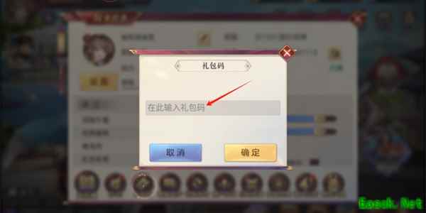 3、最后在礼包兑换界面,在兑换框中输入上方的礼包码,并点击确定即可兑换奖励。