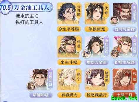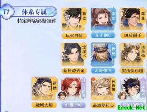 4、接下来就到T1级别了,是一些体系专属的武将,特定阵容必备挂件,包括蒋钦、张郃、邓艾、徐晃等。