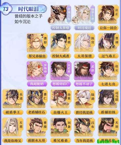 6、后面是T3级别的时代眼泪,包括蜃梦左慈、法正、曹彰、曹植、陈宫、贾诩、步练师、太史慈等。