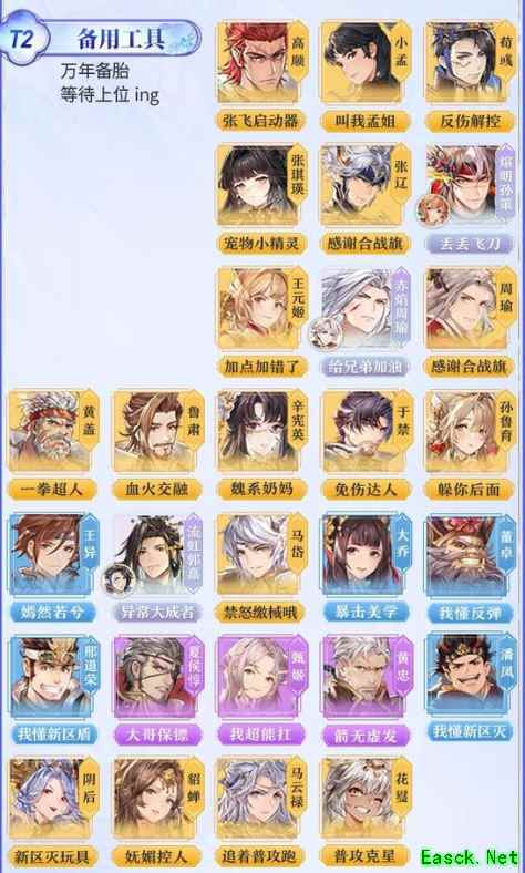 5、之后是T2级别的备用工具,有高顺、小孟、荀彧、张琪瑛、张辽、王元姬、周瑜、黄盖、鲁肃、于禁等。