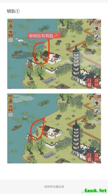 图1-3钥匙(需要砍掉遮挡的柳树)