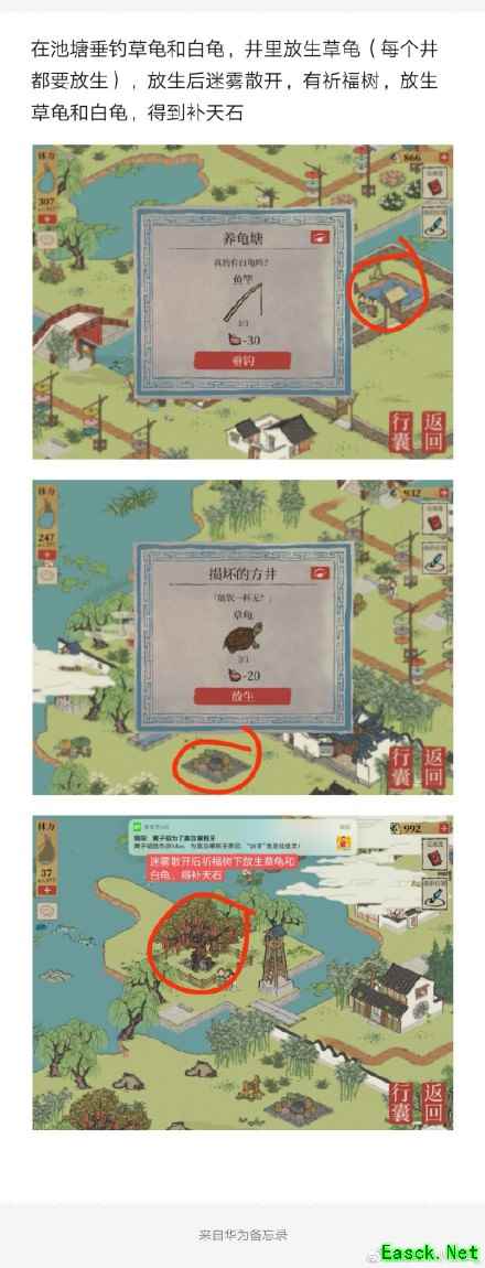 图8隐藏任务,池塘垂钓乌龟在水井放生,全部水井放生以后,迷雾散开,在祈福树放生,得到补天石