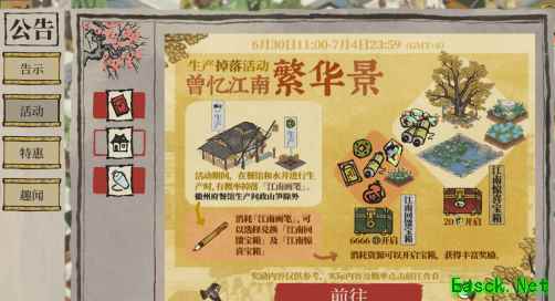 《江南百景图》江南画笔获得方法活动期间,在餐馆和水井进行生产时,有概率掉落「江南画笔」。徽州府餐馆生产问政山笋除外 消耗「江南画笔」,可以选择兑换「江南回馈宝箱」及「江南惊喜宝箱」 江南回馈宝箱:6666铜钱开启 江南惊喜宝箱:20补天石开启 消耗资源可以开启宝箱,获得丰富奖励。