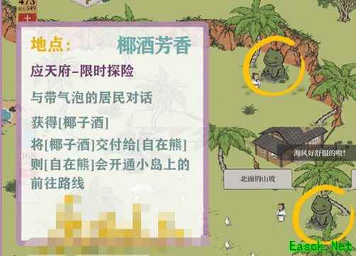 《江南百景图》椰酒芳香隐藏任务完成攻略与带气泡的居民对话,获得[椰子酒],将[椰子酒交付给[自在熊],则[自在熊]会开通小岛上的前往路线。