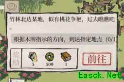 《江南百景图》竹林北边某地位置介绍一、任务介绍 竹林北边某地,似有桃花争艳,过去瞧瞧吧。 根据木牌指示的方向,到达指定地点(0/1)