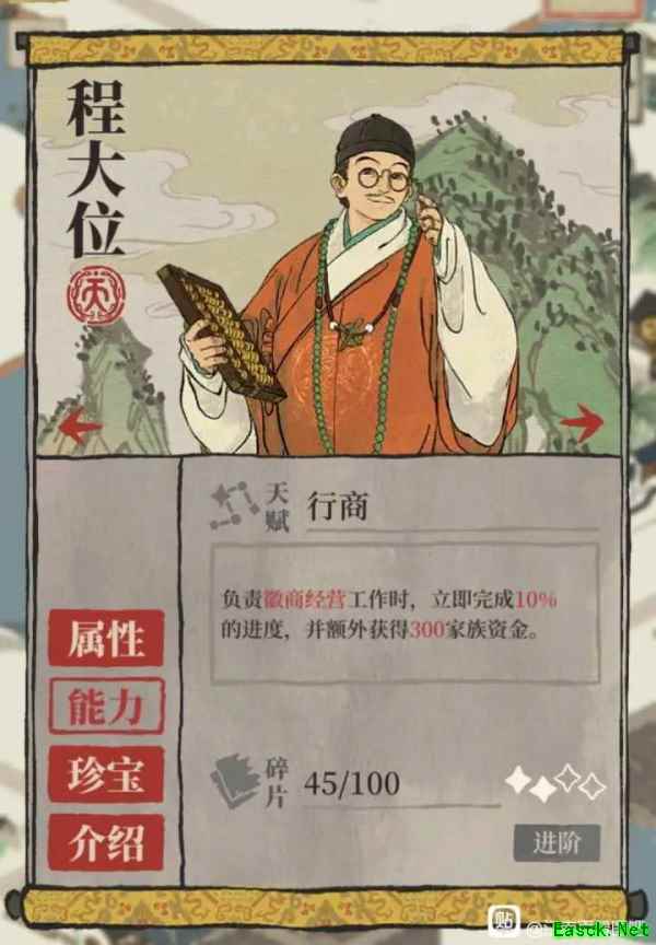 以上就是《江南百景图》程大位满级属性介绍,更多游戏攻略请持续关注手游网! 本文内容来源于互联网,如有侵权请联系删除。 |