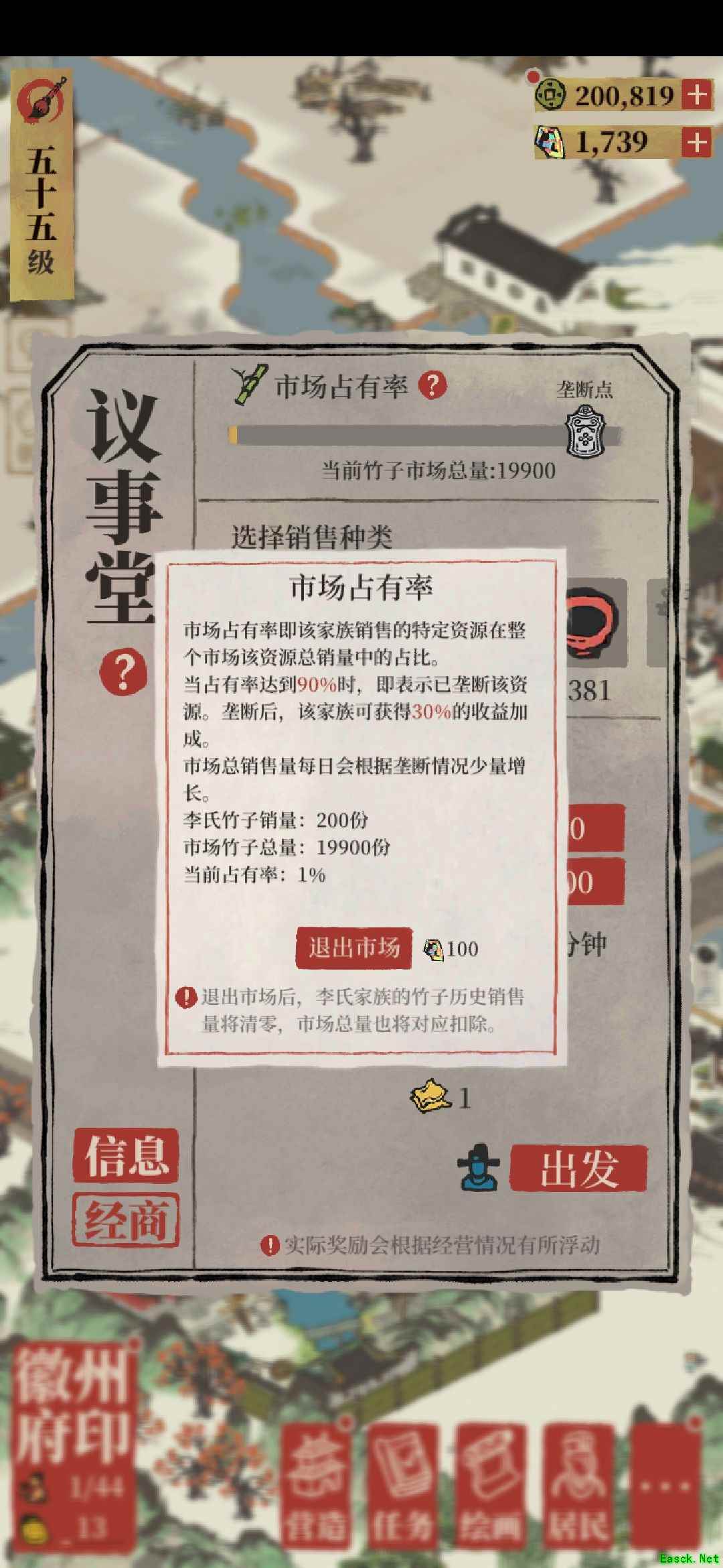《江南百景图》徽商布局摆放攻略徽商的升级制度真是要逼死布局玩家 我就玩了这些天的徽商总结了一些想法 首先我舍弃了追求徽商升级 普通物资售卖选那种都行,但是你要记住和小心操作以防售卖了别家的物资 这里我推荐用一级徽商200档刷 通过对比我觉得刷200档的徽商金箔会最大化 当用满级程大位刷徽商时,用一次问政山竹减CD,可以直接售完 此方法适用于金箔稀少,竹笋多的玩家 关于布局方面,我觉得徽商玩法既然限制了我们 我们也可以跳脱出徽商制度(前提是已经垄断了普通物资的后期)按照自己喜欢的布局布置就好啦 可以仿照徽商升级的条件,但不必放置那些生产污染严重的建筑。也可以完全打乱,布成一步一景建筑与景色完全融合在一起 徽商这个体制,大家可以不用太肝,总量有到头的一天慢慢玩就可以
