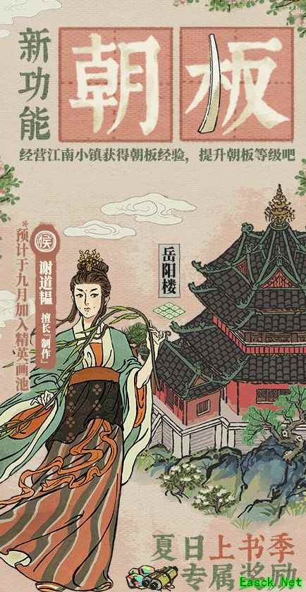 《江南百景图》朝板象简购买建议象简奖励(起价68元,因为勤快的玩家才能不花冤枉钱提升等级): 建筑画轴*6(本月必然有新的建筑画池!), 金画轴*11, 无限加速票*10, 琉璃瓶*1, 书香门第礼盒*1, 春色满园礼盒*1, 稀有花圃礼盒*1, 谢道韫*1+碎片*50(升一阶), 岳阳楼*1, 补天石*618。 u1s1,这68元真的很值!比抽奖、累消、累充、礼包都要划算!氪金玩家真的不要错过! 付费购买【象简】权益,提升朝板经验即可解锁专属奖励:全新侯级居民【谢道韫】(预计将在9月进入精英画池)、全新建筑【岳阳楼】。