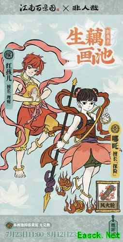 生藕画池活动介绍【活动时间】 7月23日-8月12日 【活动内容】 【非人哉 • 生藕画池】开启!联动居民哪吒、红孩儿概率up。 该画池内可抽取哪吒专属珍宝【风火轮】。