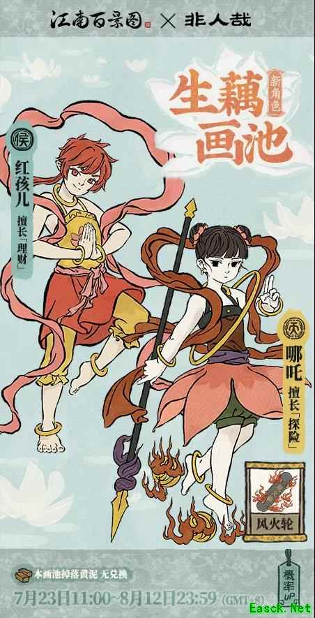 7月23日-8月12日 -【非人哉 • 生藕画池】开启!联动居民哪吒、红孩儿概率up。该画池内可抽取哪吒专属珍宝【风火轮】;