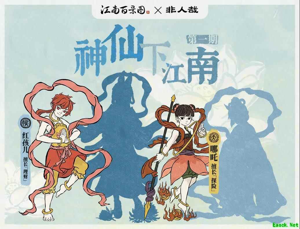 《江南百景图》非人哉联动活动介绍一、联动时间 非人入百景,神仙下江南。 7月23日起,江南百景图将与非人哉展开系列联动活动,第一期联动居民 —— 哪吒、红孩儿入住江南小镇! 二、第一期联动居民 1、非人哉 • 哪吒 源自于中国古代神话人物,漫画《非人哉》中的角色。藕身人像,脚踩风火轮,身挎乾坤圈。性格调皮爱玩,最爱的动物是龙。 机缘巧合之下来到江南小镇,哪吒与善良的居民们朝夕相处,结交了不少诸多好友。 2、非人哉 • 红孩儿 源自于中国古代神话人物,漫画《非人哉》中的角色,为牛魔王与铁扇公主之子。 红孩儿天生自带红发,外表看似性格火爆、不太好相处,实际上非常乐于助人。 他的到来,为江南小镇增添了许多温暖。