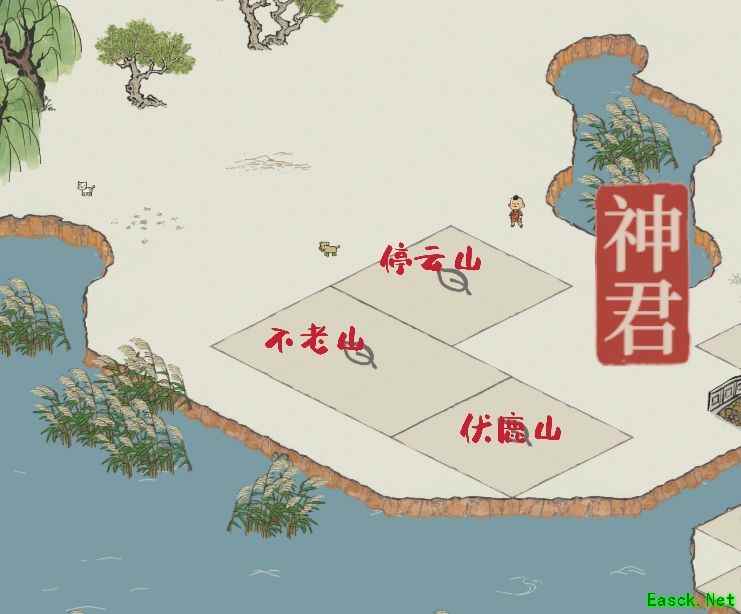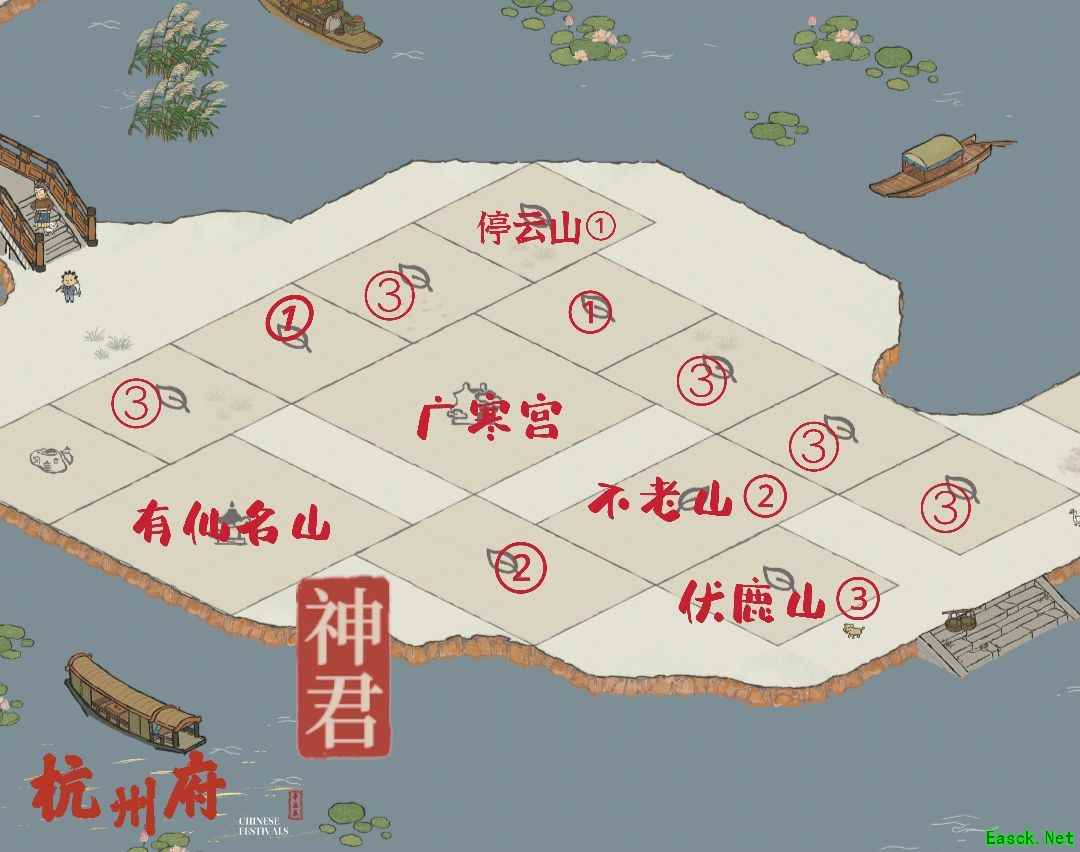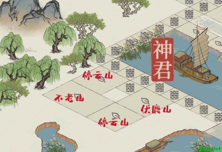 《江南百景图》群山布局推荐选择一块合适的空地 将①停云山②不老山③伏鹿山有效组合: