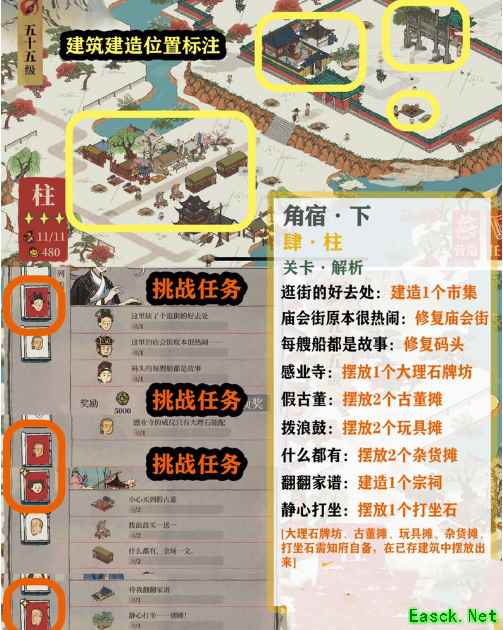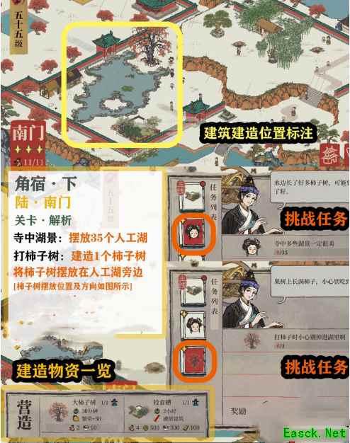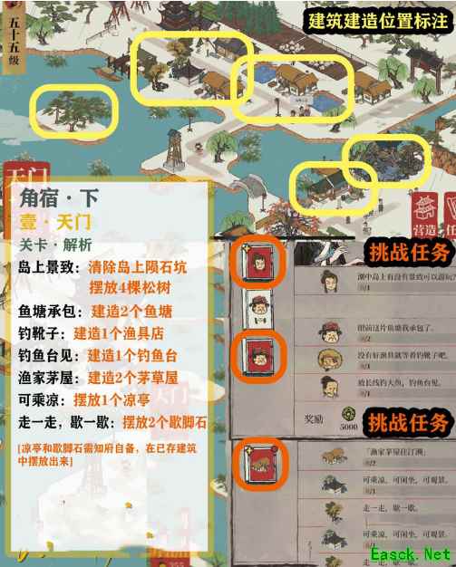 《江南百景图》鸡鸣山角宿下通关攻略壹·天门 凉亭和歇脚石需要知府自备,凉亭可通过小贼/盐商兑换获得,歇脚石可通过盐商兑换获得。