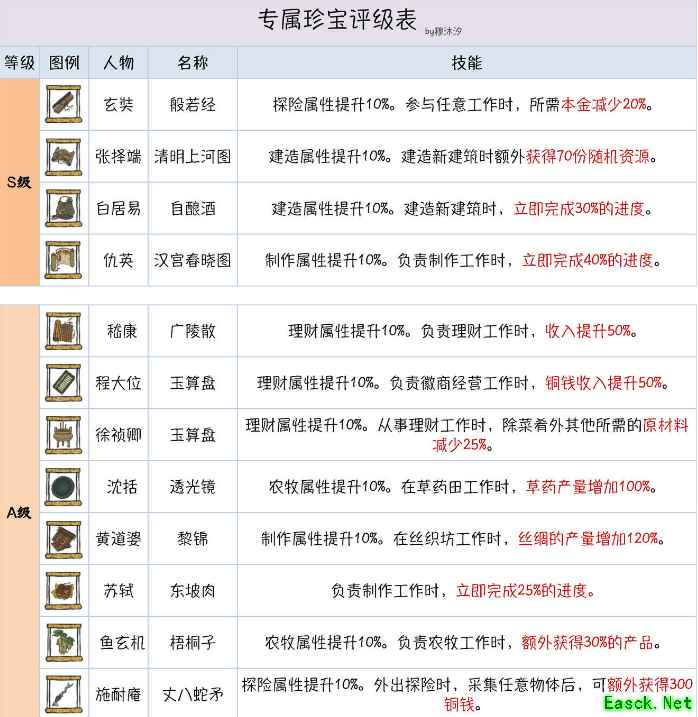 李白的专属,探险属性提升10%。探索新区域时,立即完成20%的进度。有仇珠和徐霞客珠玉在前,略显微小。 文俶的专属,建造属性提升10%,农牧属性提升10%。一件珍宝顶两个使用。 其他没提及的要么-1工人,减铜钱,减少&获得菜肴,加速体力恢复,固定制作生产场所导致非常局限,也是那句话,优先级不高!其实真正强的也就S级的专属。 个人推荐还是先存够金仙豆再考虑突破珍宝,不满级的专属是凸显不出价值的。 以上就是小编整理的江南百景图仙豆与金仙豆突破攻略的全部内容了,想知道更多相关资讯攻略的请关注手游网。 本文内容来源于互联网,如有侵权请联系删除。 |