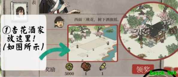 《江南百景图》库楼通关攻略任务的第一个内容是放置一个杏花酒家,具体的位置如图:
