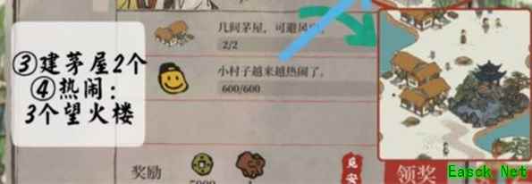 第三个内容是建造两个茅草屋,可以避风挡雨。