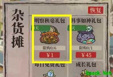 3、就可以看到每天限购6个的明察秋毫礼包,售价1元人民币。