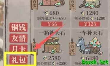 2、之后在杂货铺界面的左下角选择礼包选项,