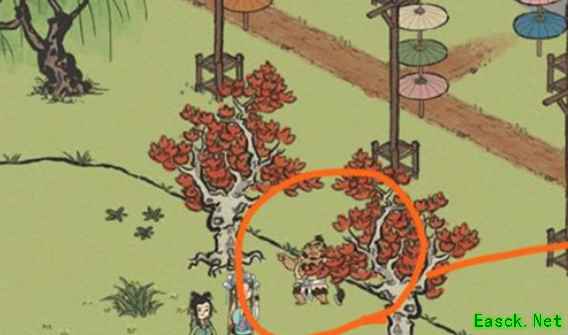 《江南百景图》长恨歌强盗位置介绍这个还是很难找到的,具体位置就是在两棵树中间,不仔细看的话很难发现,因为强盗的颜色和树的颜色比较接近,而且叶子挡住了强盗一半身体,所以就导致很多玩家都没有找到他。