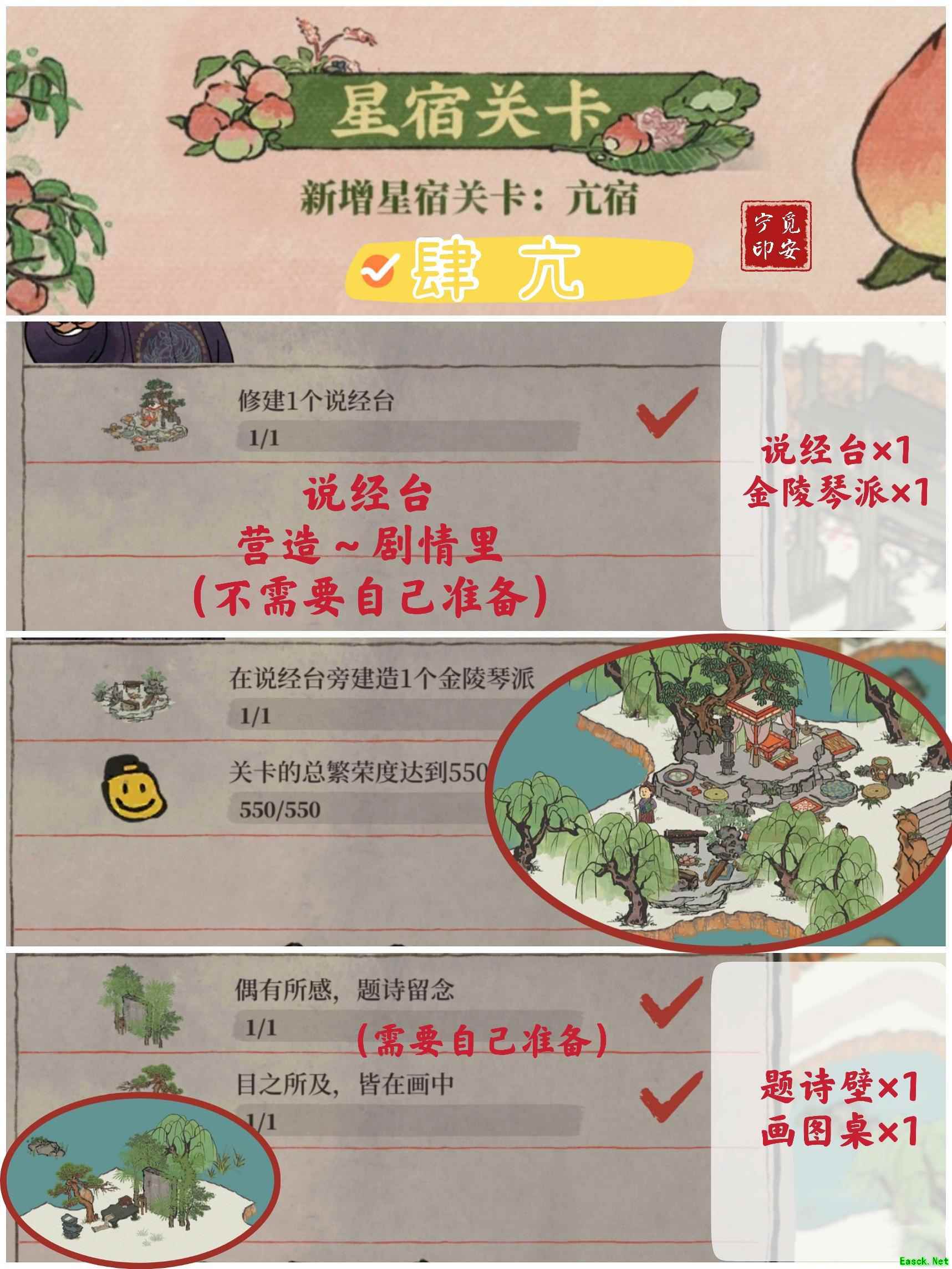 《江南百景图》亢宿第4关亢通关攻略这一关的说经台是不需要自己准备的,过剧情就能够获得 然后要题诗留念是需要造一个题诗壁来题诗的。