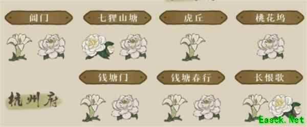 《江南百景图》山茶花探险资源兑换地点介绍探险地图采集: 应天府:七狸山塘——山茶花 杭州府:长恨歌