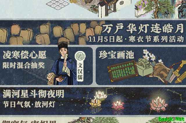 《江南百景图》文汉儒获取方法汉儒获取攻略 文汉儒需要参与凌寒偿心愿这个限时混合抽奖的活动才可以获取。 本次凌寒偿心愿的限时活动时间为11月5日-11月11日,为期一周。
