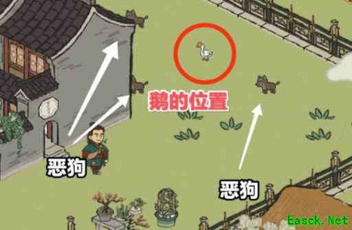 《江南百景图》解救小鹅任务攻略1、图中就是小鹅的位置了,玩家们来到这个可以看到小鹅被三条恶狗围住了,玩家们要赶走旁边的恶狗,才能够成功的解救出小鹅。