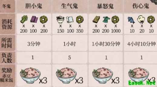 《江南百景图》暴怒鬼位置分享出现在应天府城内,每日出现时间: 【07:00-10:59】,【11:00-14:59】,【15:00-18:59】,【19:00-21:59】,在这几个时间段随机出现 今天暴怒鬼开始出没的时间为11:00. 暴怒鬼驱赶需要一个小时30分钟,负责人数1个,驱逐完可以获得3个赤豆糯米饭 最好派魏徽,钟馗,玄奘去捉鬼,捉到时有额外的加成,可以立刻完成部分进度!