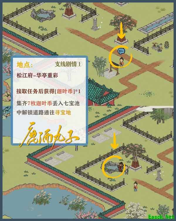 将7枚迦叶币丢入七宝池,解锁道路,前往寻宝地 4、支线剧情