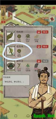 首先钓鱼需要用到钓鱼竿,还有鱼饵,所以说大家需要去获得钓竿,在毛竹田将毛竹米种下,出现毛竹林点击就可以收获毛竹,然后去鱼竿店制作钓鱼竿。