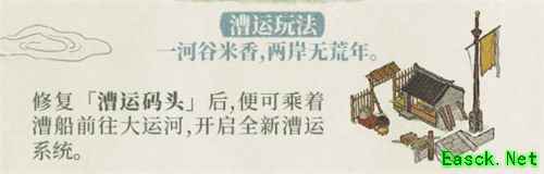 既然是漕运,就需要用到码头。 修复「漕运码头」后,便可乘着漕船前往大运河,开启全新漕运系统。
