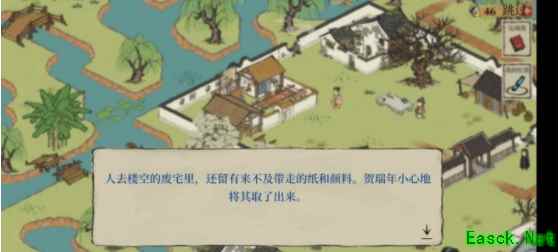18.作画 19.鹿溪隐要将贺瑞年的画作刺绣出来 20.跟董其昌进行对话 21.去追奇怪的人影 22.追逐奇怪的人影 找到五级民宅外观(查看需要玉兰花×4)的才是目标建筑,其他的是浇灌枯树用的 废弃的民宅查看后获得:井水×1 铜钱×888 补天石×2