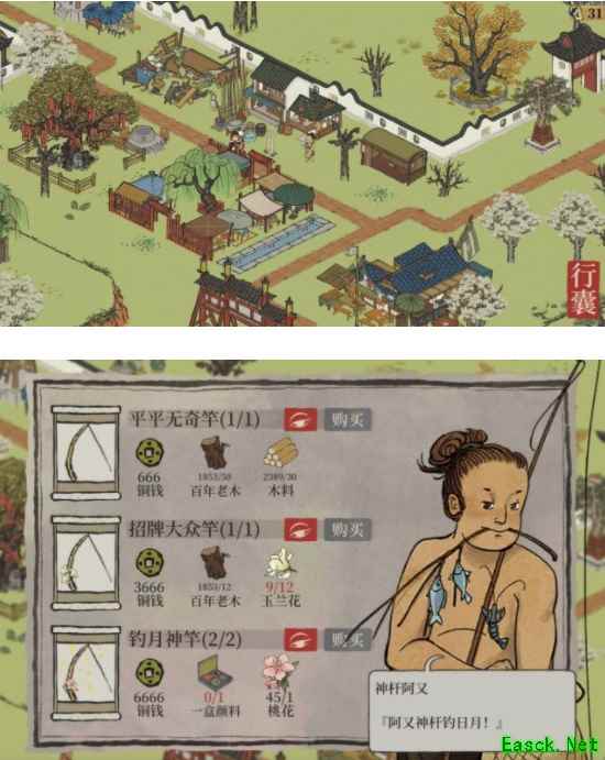 16.打开院门 (玉兰花×5 残荷×10) 17.在绣坊中找到作画工具 在枯树左边无人居住的宅子里找作画工具(玉兰花×1 残荷×5) 废弃的仓房(玉兰花×1 残荷×5) 翻找后铜钱×6888