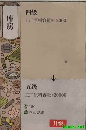 二级香粉厂: 1、新增加仓库,和两种需要压舱石的花田。 2、仓库不增加花瓣的生产效率,两种花田和普通的花田效果一样。 3、仓库等级随着香粉厂等级增加,可以花150补天石升到五级。