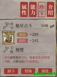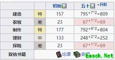 【双倍书籍】 论语、史记 【天赋:三元】 建造或升级建筑时,除菜肴外其他所有资源花费减少50%,且所需人工-3。 【珍宝推荐】 天赋:翘楚建造属性提升10%。 孟好学装备时建造属性提升10%。负责建造/升级建筑时,立即完成25%的进度。