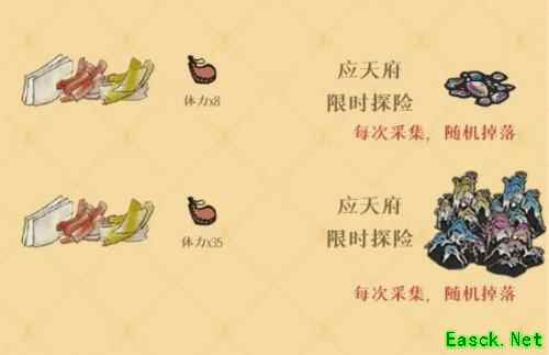 2、玩家从应天府进入探险; 3、然后花费体力采集彩贝,会随机掉落螺钿材料; 4、玩家花费35体力可以获得;花费8体力也可以获得; 5、获得数量都是随机的;