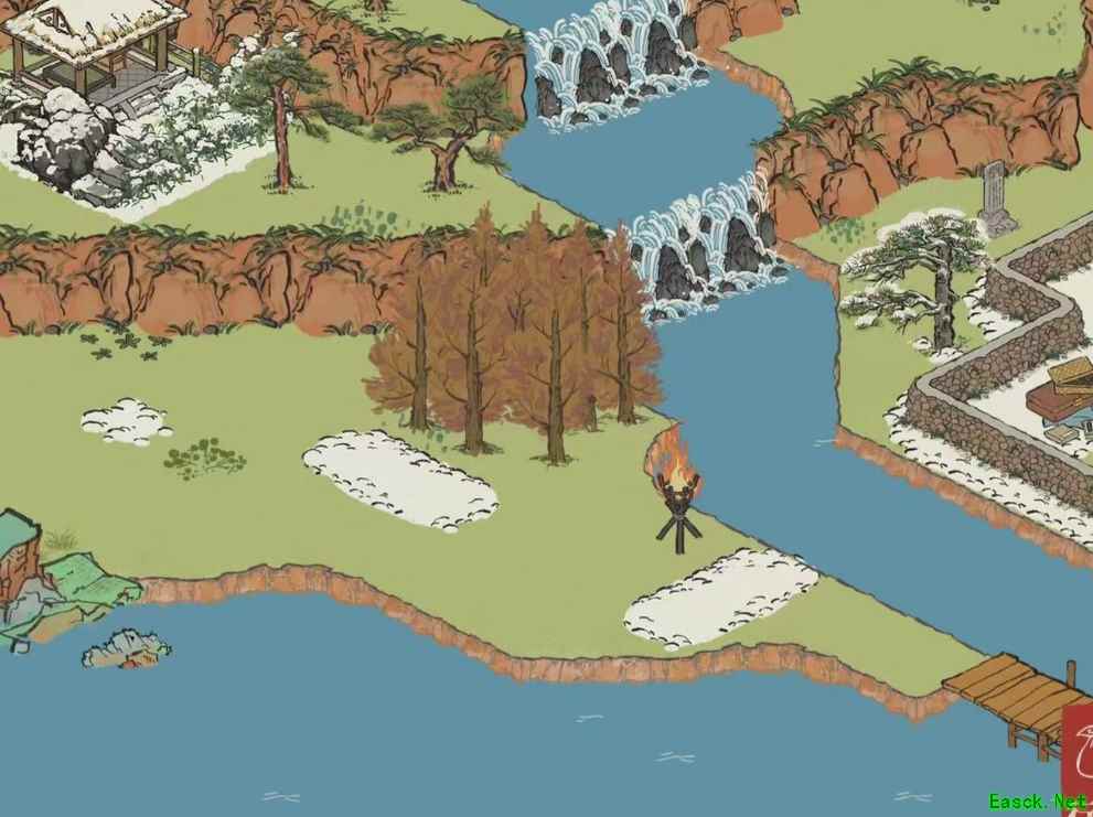 《江南百景图》歙县双鲤庭霰落梅任务完成攻略需点燃两个火炬解开迷雾,触发彩蛋任务:“庭霰落梅”。