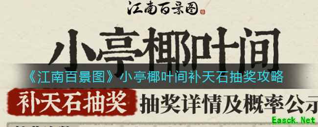 《江南百景图》游戏中小亭椰叶间补天石抽奖建议玩家抽取,奖品也是非常丰厚的,建议最多抽3次。那么今天小编就给大家介绍一下江南百景图小亭椰叶间补天石抽奖攻略,有需要的小伙伴不要错过了。