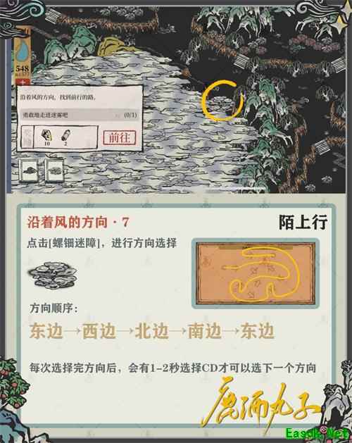 《江南百景图》陌上行第三阶段通关攻略1.沿着风的方向7:东边→西边→北边→南边→东边
