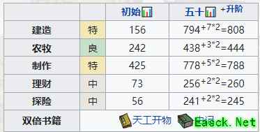 【双倍书籍】 天工开物、史记 【天赋:玉屑】 负责建造工作时,不需要消耗菜肴,反而获得原消耗50%的菜肴,且无需额外工人。 【珍宝推荐】 天赋:健康,建造属性提升10%。 弥月装备时,建造属性提升10%。负责建造/升级建筑时,立即完成40%的进度。