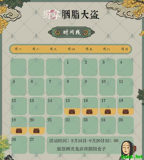 《江南百景图》缉拿胭脂大盗活动攻略1.活动时间:2022.9.15-2022.9.20 2.时间线