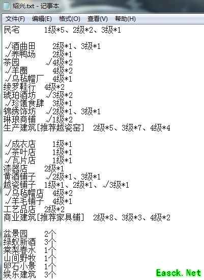 正文↓↓↓ 民宅 1级*5、2级*2、3级*1 生产———— 酒曲田 2级*1、3级*1 养鸭场 2级*1 茶园 4级*2 羊圈 4级*2 乌毡帽厂 4级*1 绫罗鞋行 4级*2 琥珀酒坊 3级*2 珍馐食肆 3级*1 锦绣饰坊 2级*1、3级*1 琳琅商铺 1级*2 生产建筑[推荐越瓷窑] 2级*5、3级*7、4级*4 商业———— 成衣店 1级*1 茶叶店 1级*1 瓦片店 1级*1 漆器店 2级*1 黄酒铺子 2级*1、3级*1 越瓷铺子 1级*1、2级*1、3级*1 乌毡帽店 4级*2 羊毛铺子 4级*1 工艺品店 2级*2 商业建筑[推荐家具铺] 2级*8、3级*3、4级*2 娱乐———— 盆景园 2个 绿蚁新酒 3个 棠梨春水 1个 山间野牧 1个 卵石小景 1个 娱乐建筑 3个 以上就是《江南百景图》绍兴全图地块激活攻略,更多游戏攻略请持续关注手游网! 本文内容来源于互联网,如有侵权请联系删除。 |