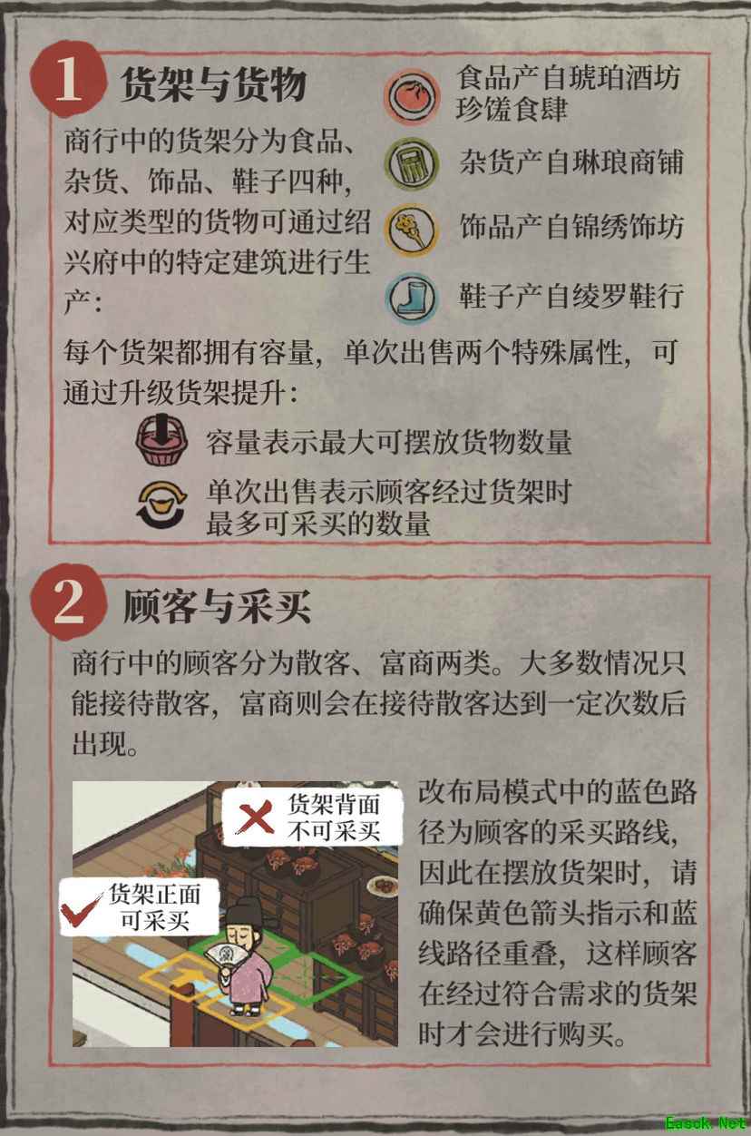 《江南百景图》绍兴越州商行玩法攻略货架种类:食品、杂货、饰品、鞋子。注意每一类货物的图标,查看顾客需求时会有相应提示。