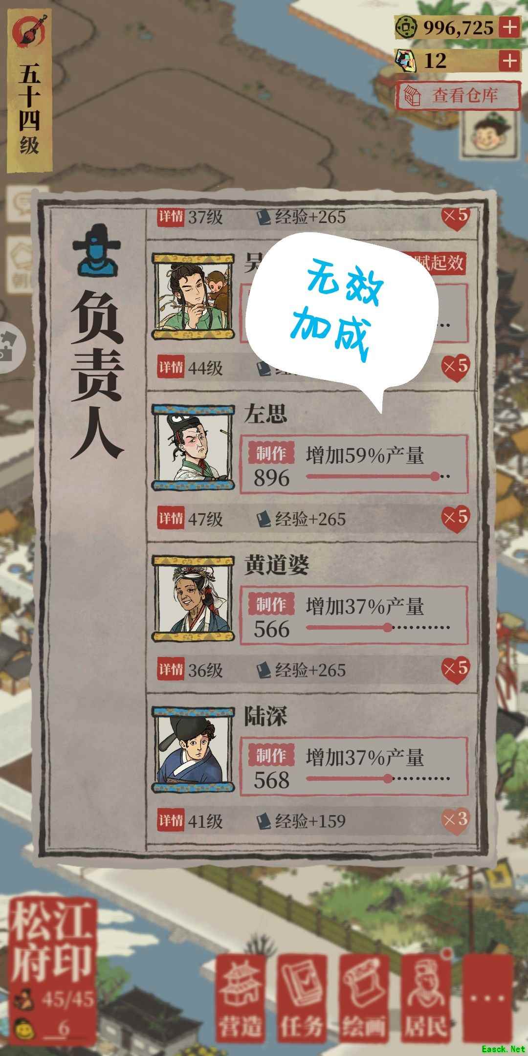 《江南百景图》绍兴府开荒任务选择攻略开荒人物 A.先分清楚什么是【有效加成】和【无效加成】? 以【左思】为例 左思仅在【造纸厂】有加成;在别的生产无加成,与普通建筑特无区别。